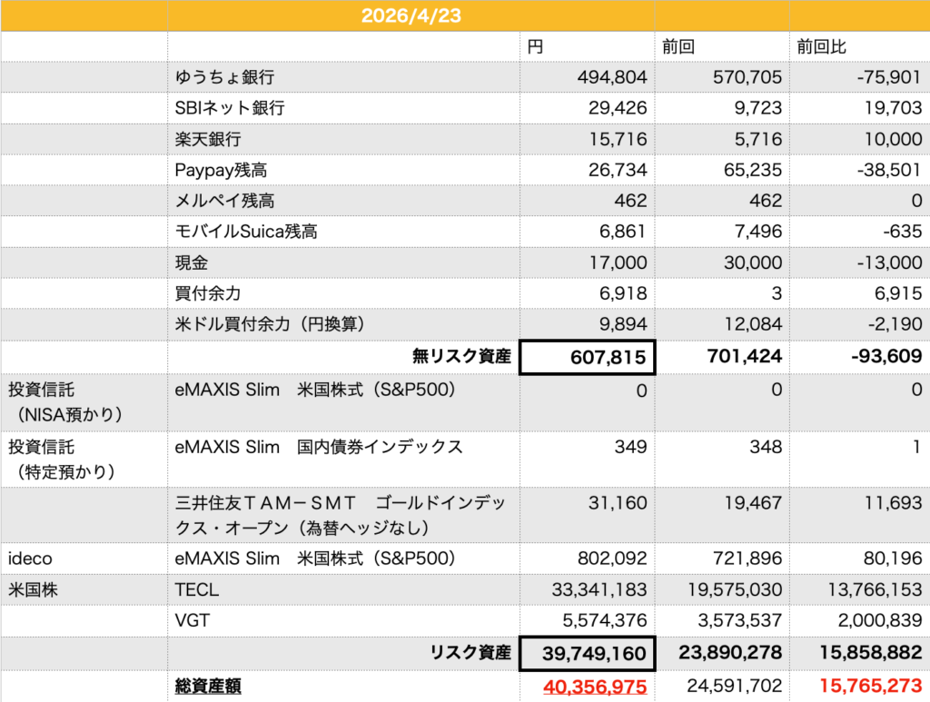 【投資】20260423総資産【4000万円突破!!】
